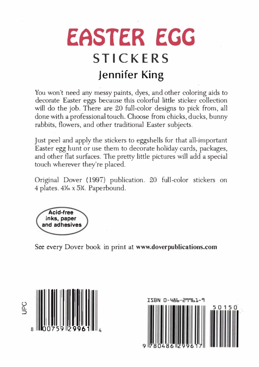Just peel and apply the stickers to eggshells for that all-important Easter egg hunt or use them to decorate holiday cards, packages, and other flat surfaces. The pretty little pictures will add a special touch wherever they're placed.