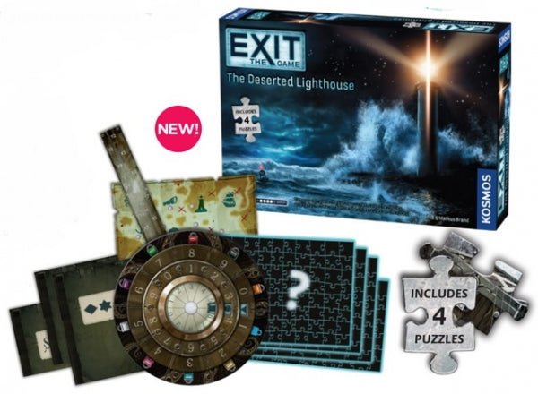 In this EXIT game, there are riddles within riddles, hidden within four jigsaw puzzles. Like other EXIT titles, The Deserted Lighthouse has no game board, but it also has no riddle cards. Instead, there are four jigsaw puzzles that you will find and assemble, one at a time. Each completed puzzle reveals a location containing more riddles to decipher.