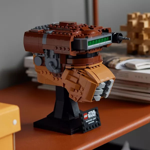 Channel Jedi-like focus to build the LEGO Star Wars Princess Leia (Boushh) Helmet model set with a brick-built display stand and nameplate