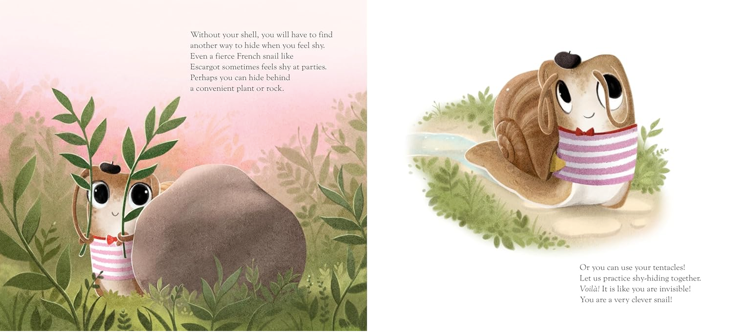 Bonjour! Today is Snailentine's Day, and Escargot is on his way to a party. Will his Snailentine be there? When he arrives, Escargot is a bit nervous and wants to hide in his shell. But in the end, he makes a surprising new friend in a fellow party guest.