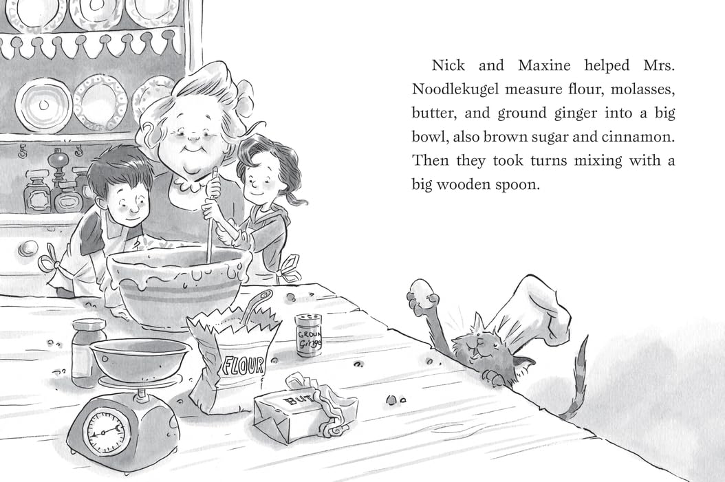 With signature wit and whimsy, the inimitable Daniel Pinkwater introduces an eccentric, endearing babysitter every child will wish they could have. Welcome to the world of Mrs. Noodlekugel, where felines converse and serve cookies and tea, vision-impaired mice join the party (but may put crumbs up their noses), and children in search of funny adventures are drawn by the warm smell of gingerbread and the promise of magical surprises.