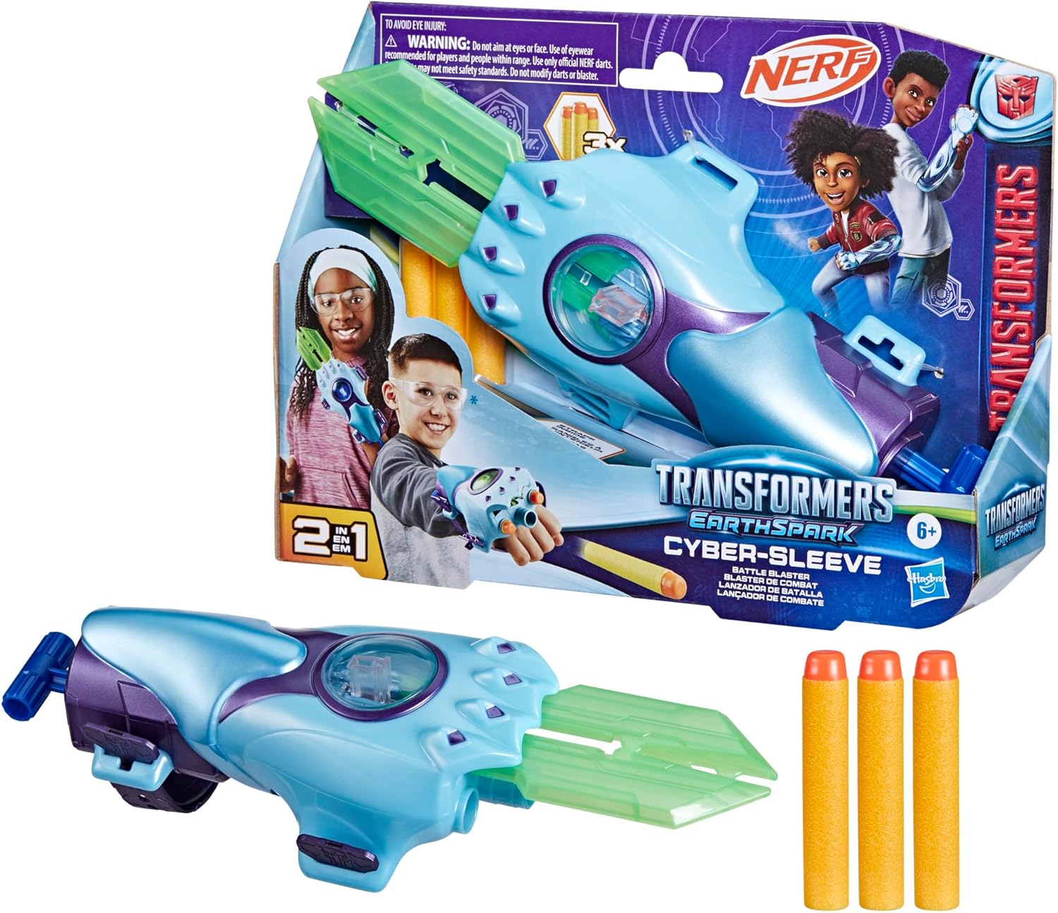 - WEARABLE 2-IN-1 BLASTER TOY: The awesome Transformers EarthSpark Cyber-Sleeve lets kids feel like part of the action, with a retractable Cyber-Sword and dart launcher