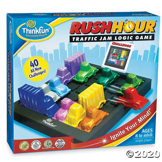 t will take more than a little skilled driving to get the red car out of this traffic jam – it will take brainpower. In Rush Hour, a sliding block logic game, you have to battle the gridlock as you slide the blocking vehicles out of the way for the red car to exit. With 40 all-new challenges, ranging in difficulty, players can progress at their own speed. As one of the best logic games of all time, Rush Hour is a must for every household.