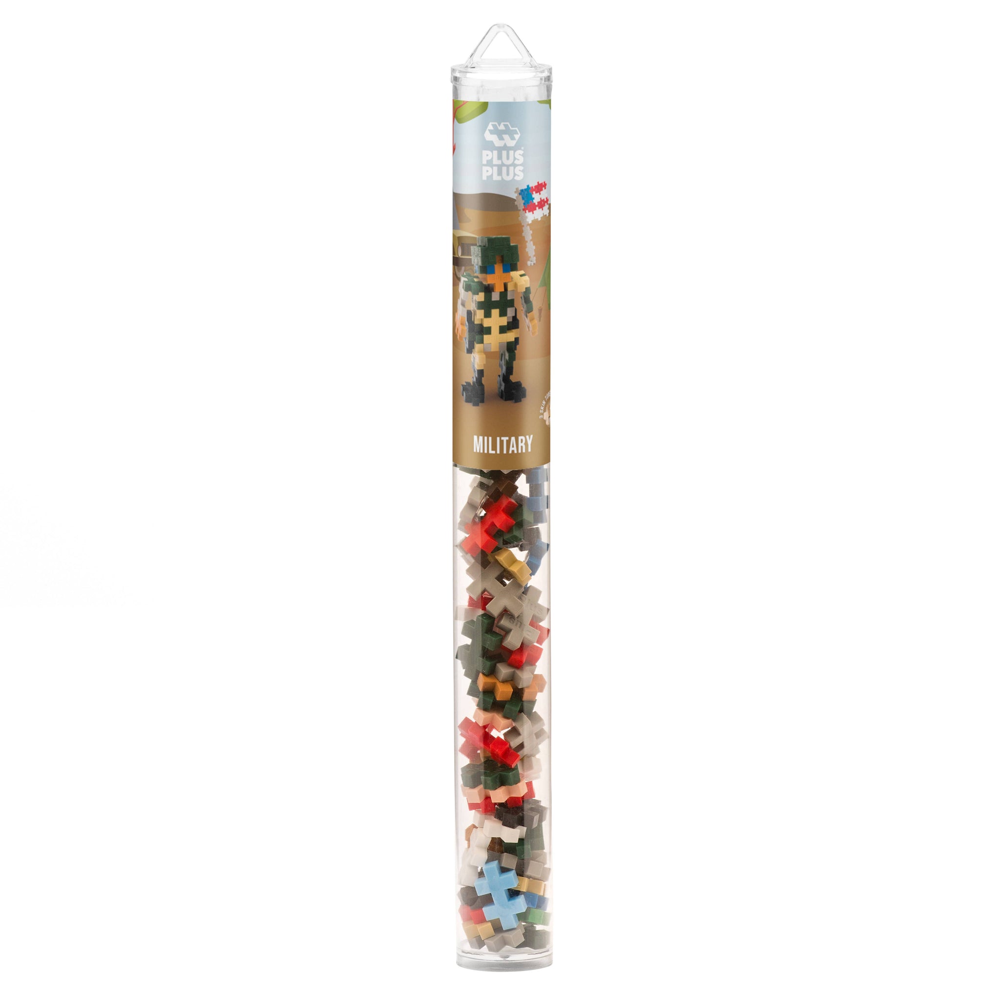 The Military tube contains 70 pieces in Red, White, Blue, Tan, Forest Green, Black, Gray, Brown, Camel, and Peach. Build a Soldier along with an American flag!