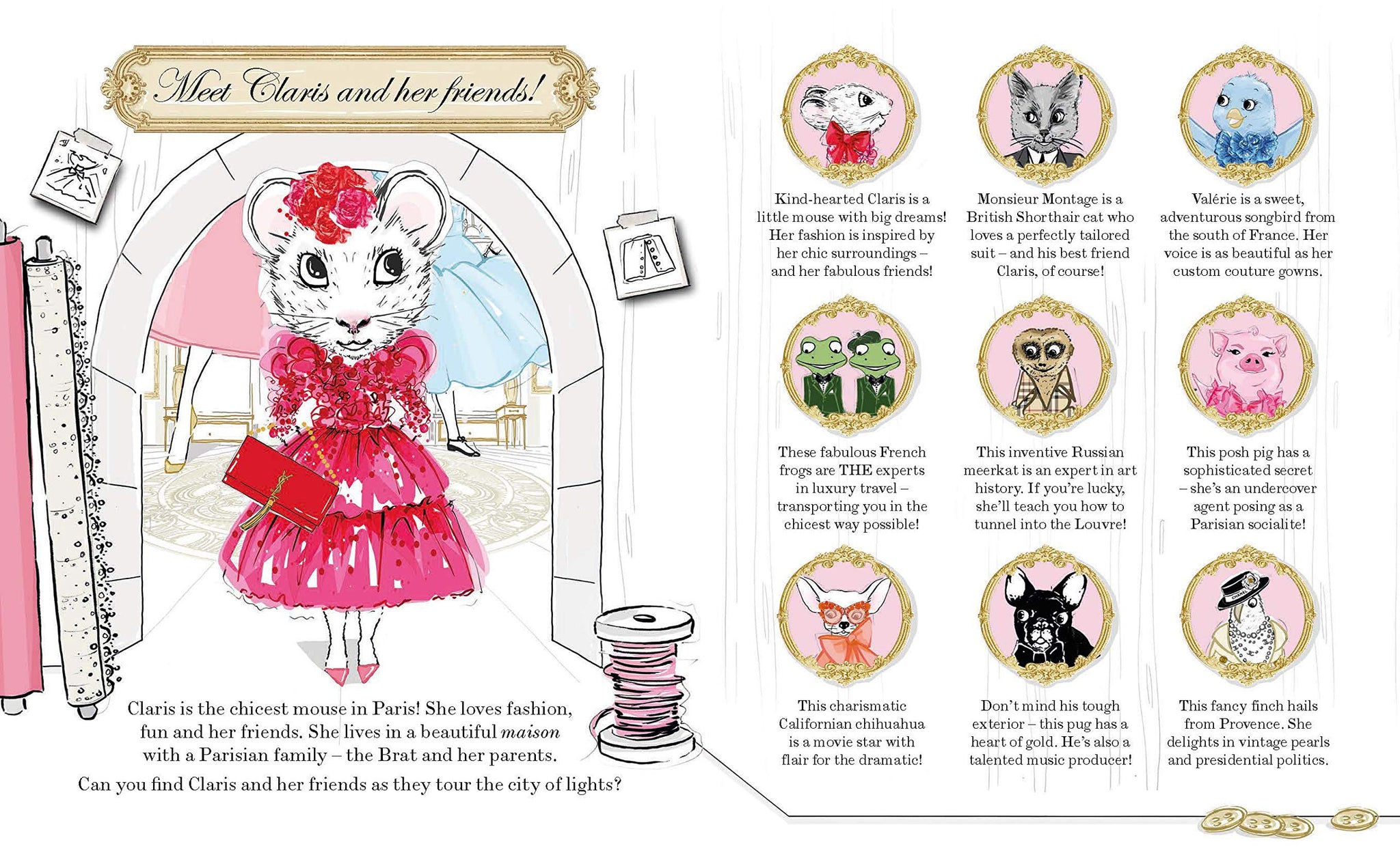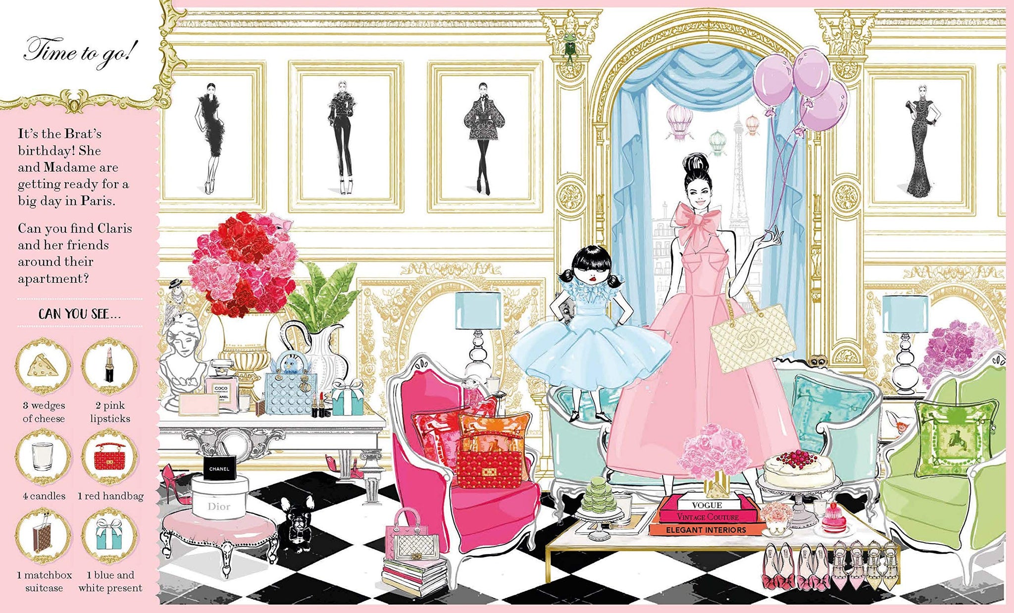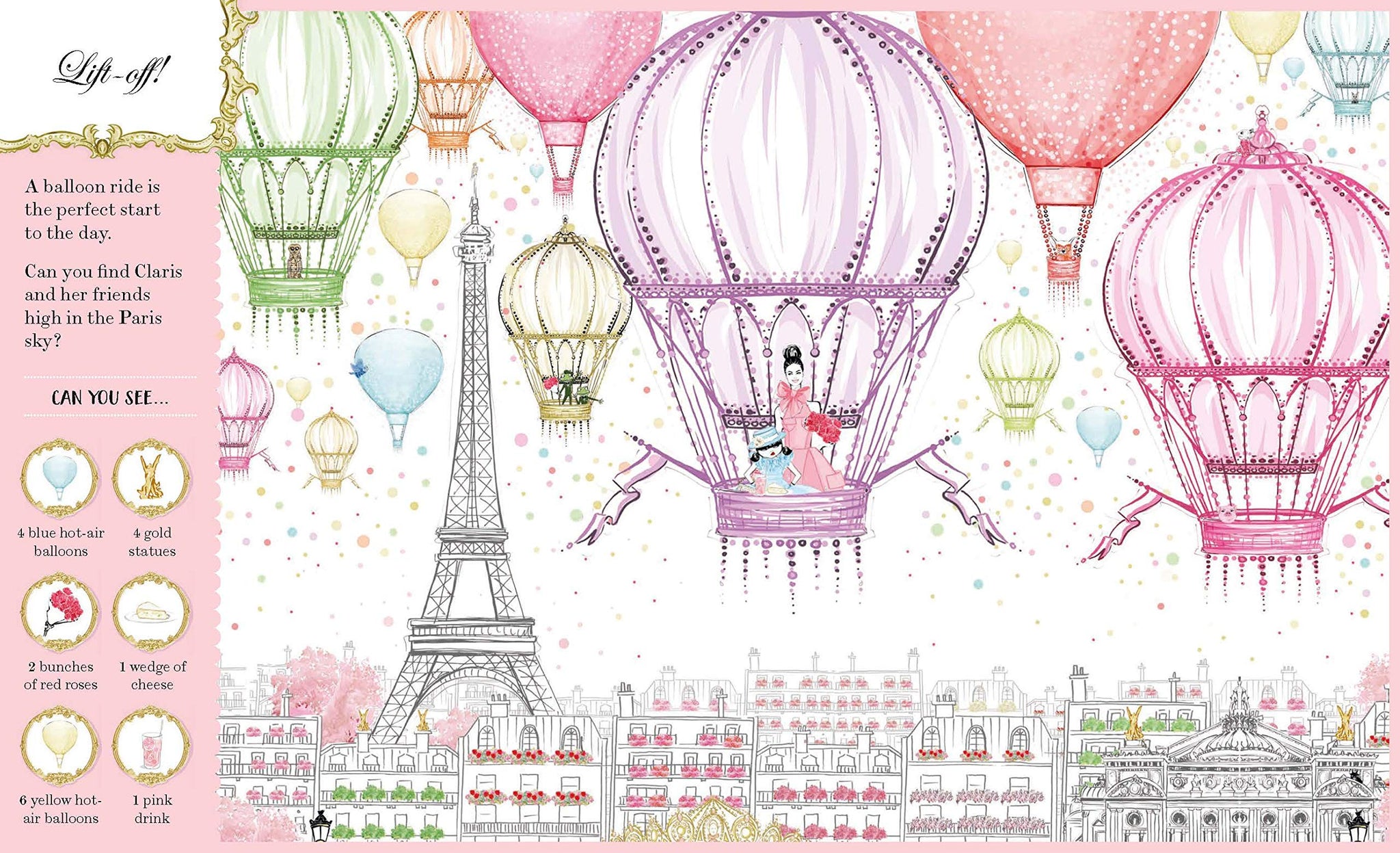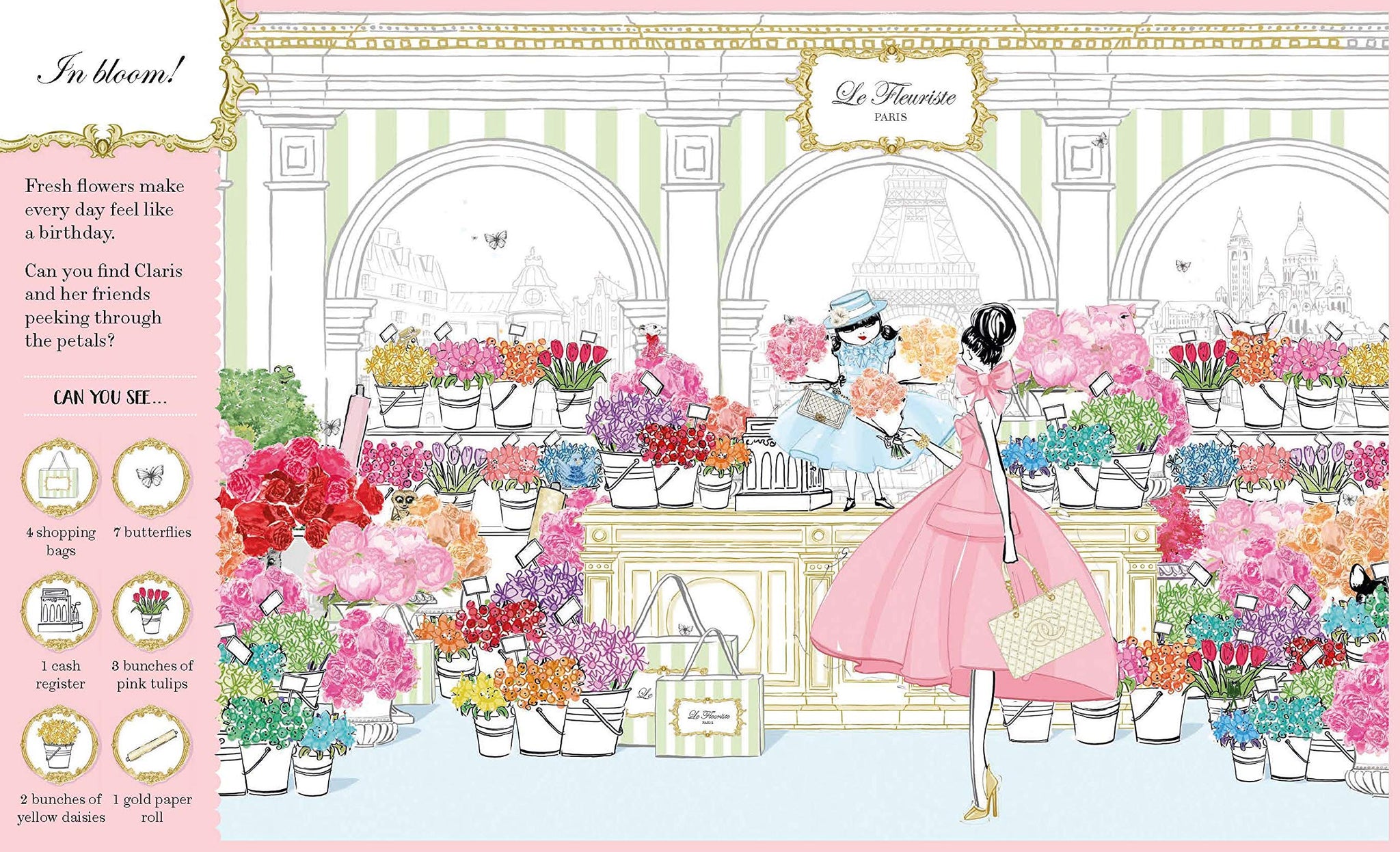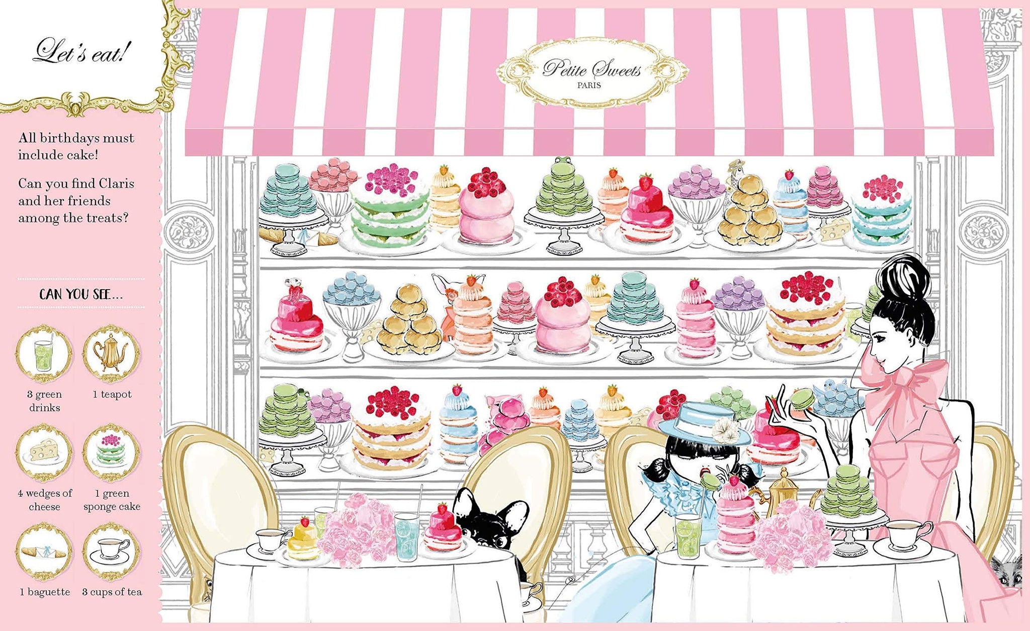 This gorgeous look-and-find book takes Claris and favorite characters from the stunning Claris children's book series and invites readers of all ages to search for them on each beautiful spread! Including evocative cityscapes, covetable fashion, and recurring characters such as Claris, Monsieur, Madame and the brat, Hubert, the frogs and the flower deliveryman, this book is bursting with added delights for Claris fans the world over.